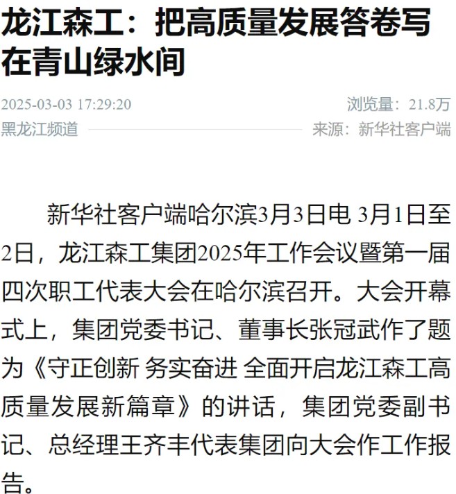 【媒體關注】新華社|龍江森工:把高質量發展答卷寫在青山綠水間