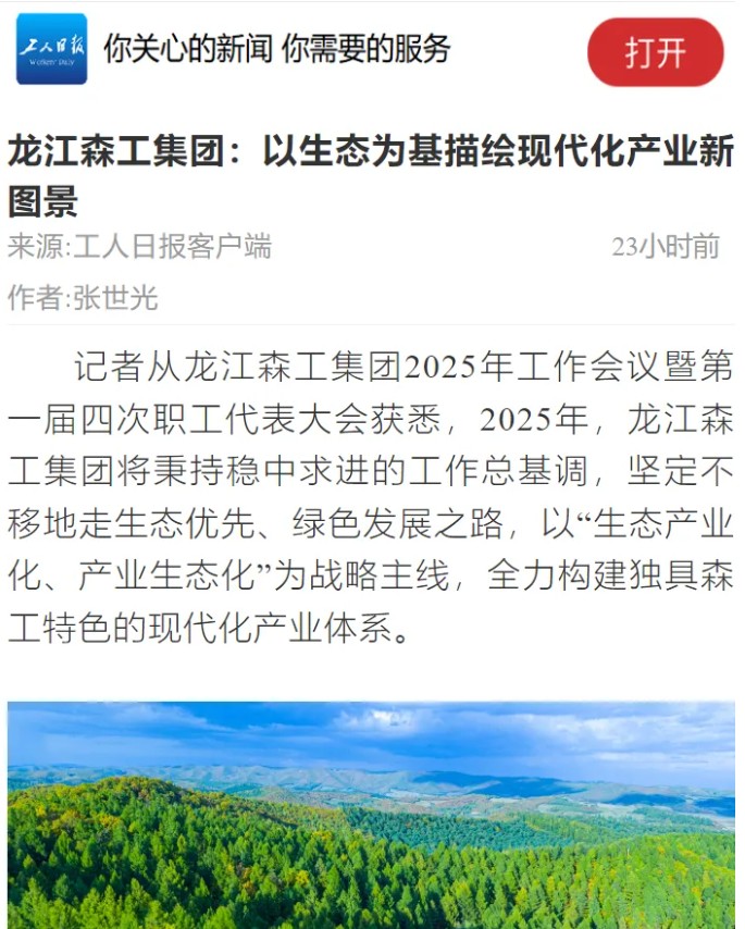 記者從龍江森工集團2025年工作會議暨第一屆四次職工代表大會獲悉,2025年,龍江森工集團將秉持穩中求進的工作總基調,堅定不移地走生態優先、綠色發展之路,以“生態產業化、產業生態化”為戰略主線,全力構建獨具森工特色的現代化產業體系。